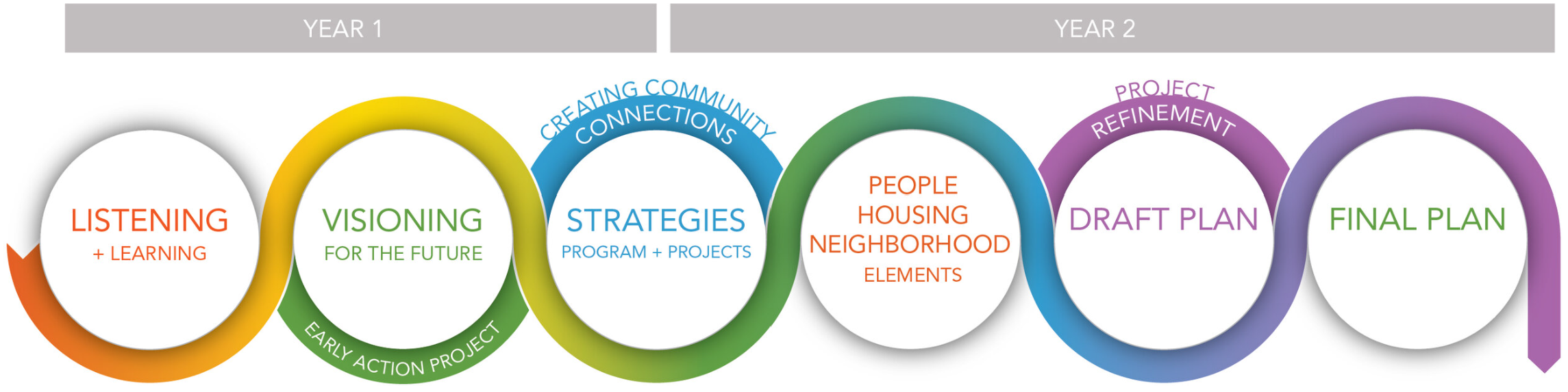 The planning process for the Forest Park/Diggs Community Plan will take about 2 years to complete (2025-2026).